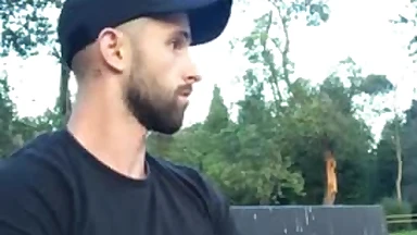 Bearded Squirrel pulls out his big meat and jerks in his backyard