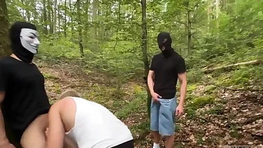 Hardcore and fiery threesome for three strong and hairy hunks wild