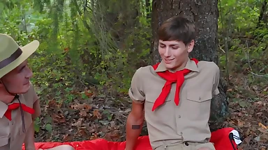 Horny scout Ethan Tate hones his bottom skills with the help of Tucker Barrett